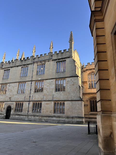 First order of business after getting into my home away from home was to walk the streets of Oxford to say hallo to the Bodleian Library, Blackwell's Bookshop, Sheldonian Theatre, Bridge of Sighs, Turl Street, etc. They all greeted me this day with their glowing stones, basking in the bright sun. I couldn't get over the deep blue sky we've had for so many days.
